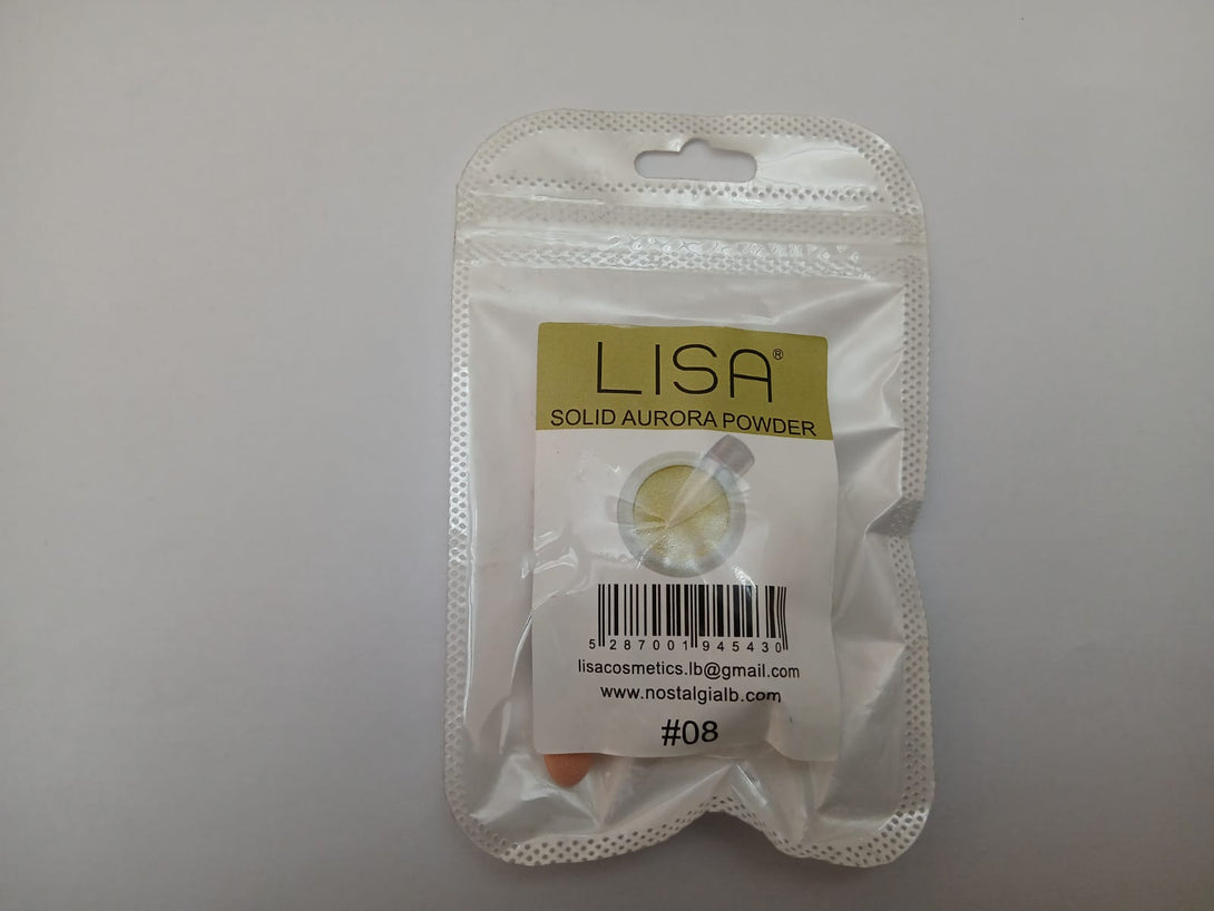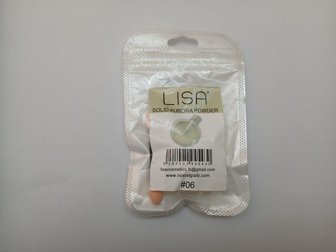 lisa solid aurora yellow powder #08, lisa solid aurora green powder #07, lisa solid aurora blue powder #02, lisa solid aurora light green powder # 06, lisa solid aurora purple powder #05 |